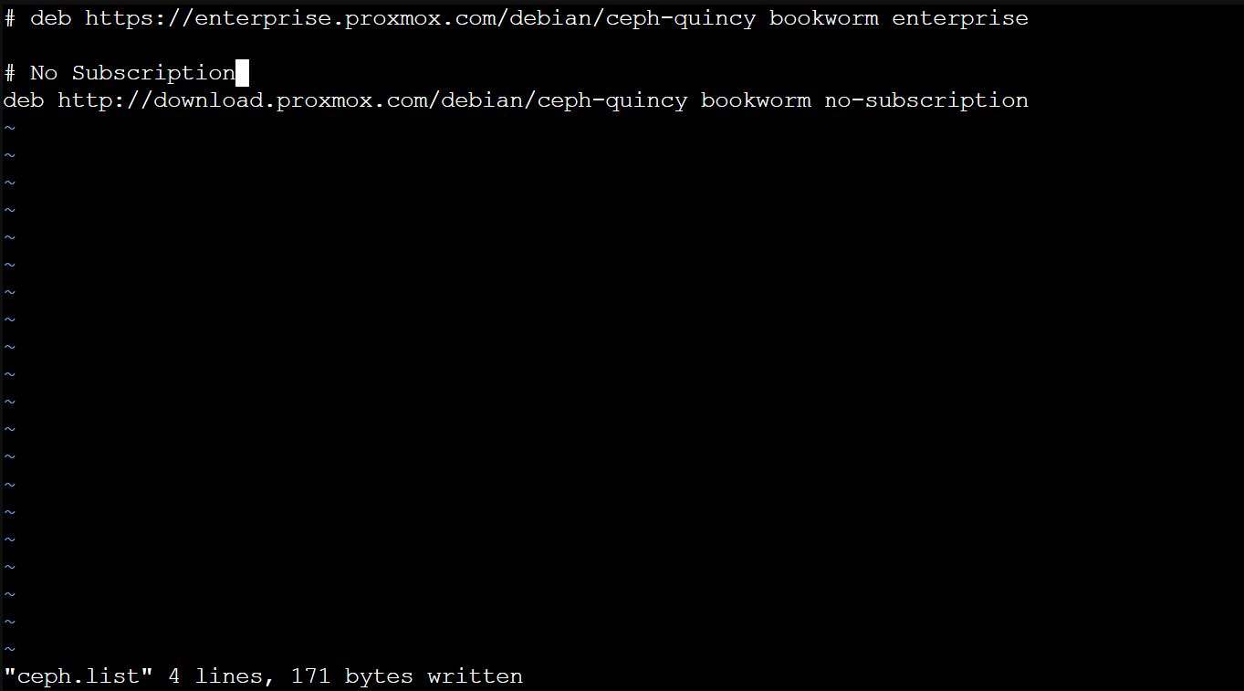 deb http://download.proxmox.com/debian/ceph-quincy bookworm no-subscription
