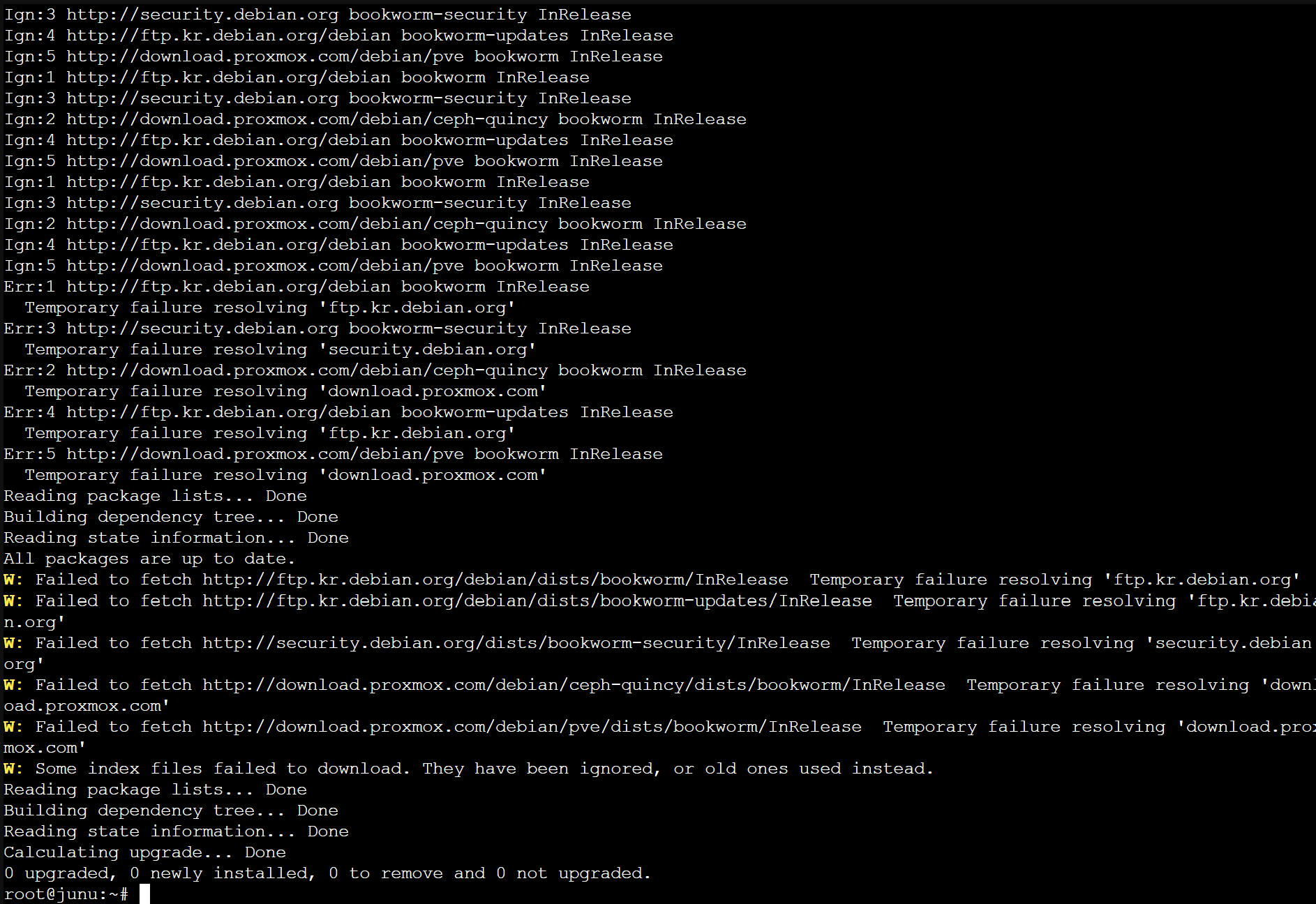 - /etc/apt/sources.list.d/pve-enterprise.list에서 enterprise를 주석 처리