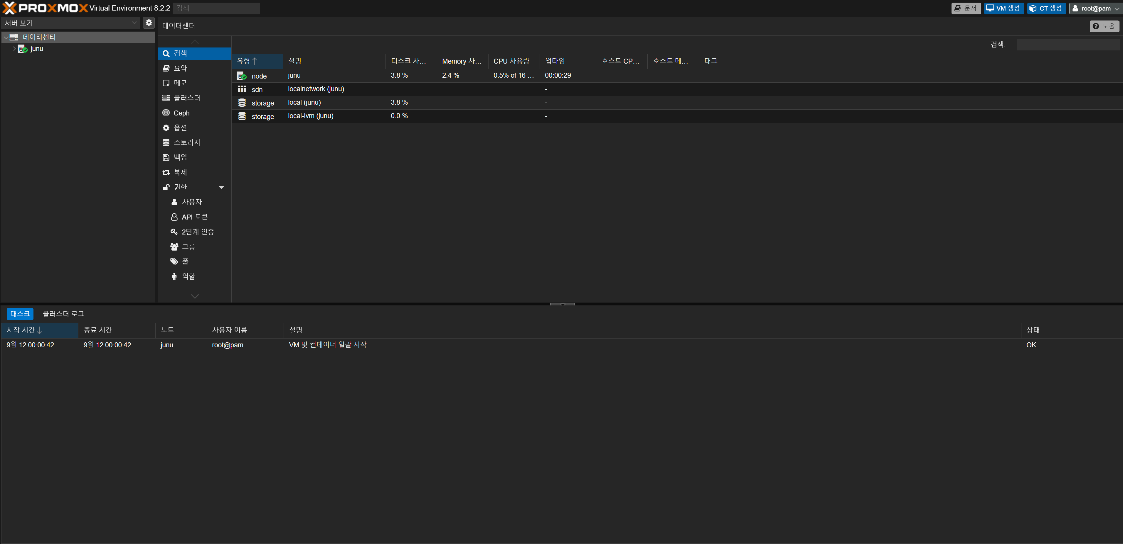 | Promox VM 생성 및 설치 (3) | 2024.09.29 |