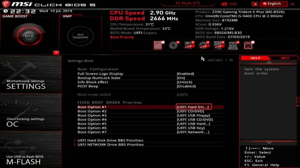 - 메인보드 BIOS 메뉴로 들어가서 부팅 순서를 USB가 먼저 부팅되도록 변경